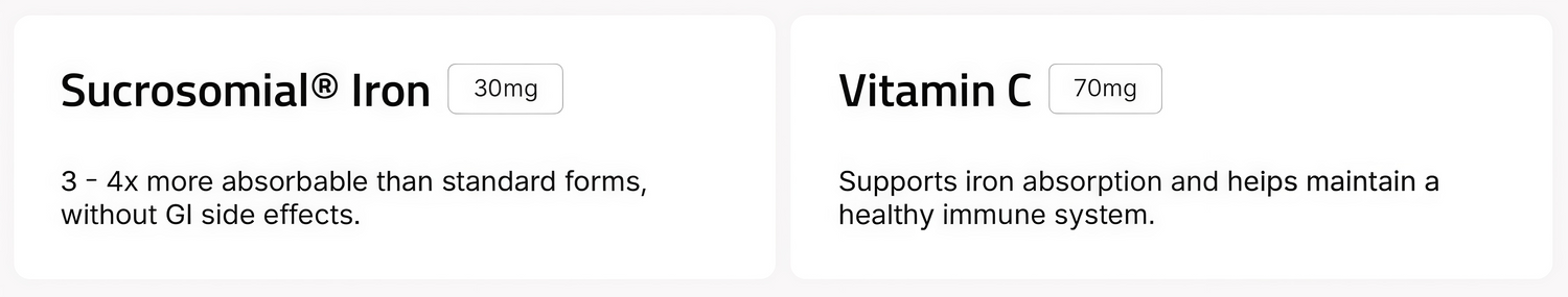 Formulated with Sucrosomial® Iron and Vitamin C for maximum iron absorption.