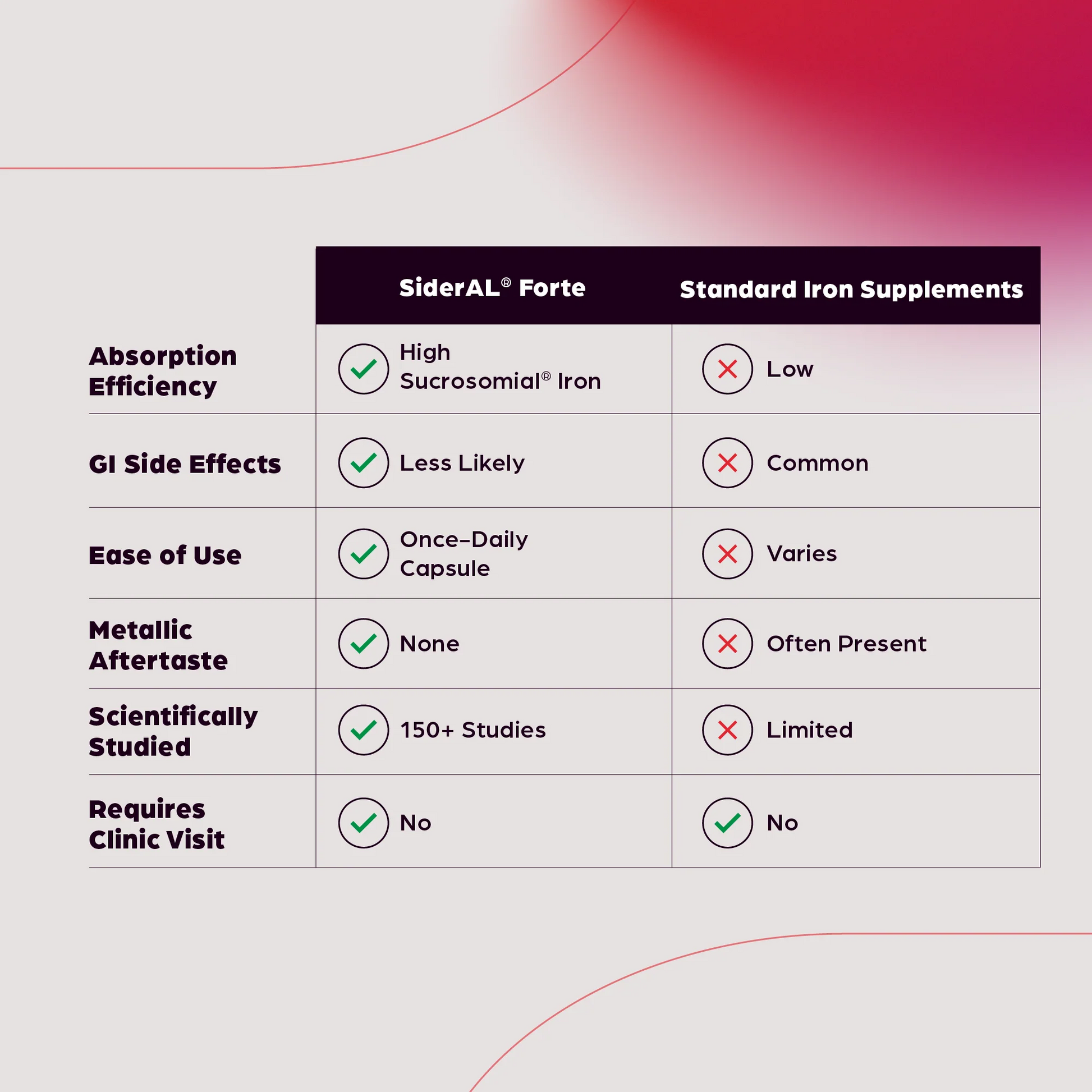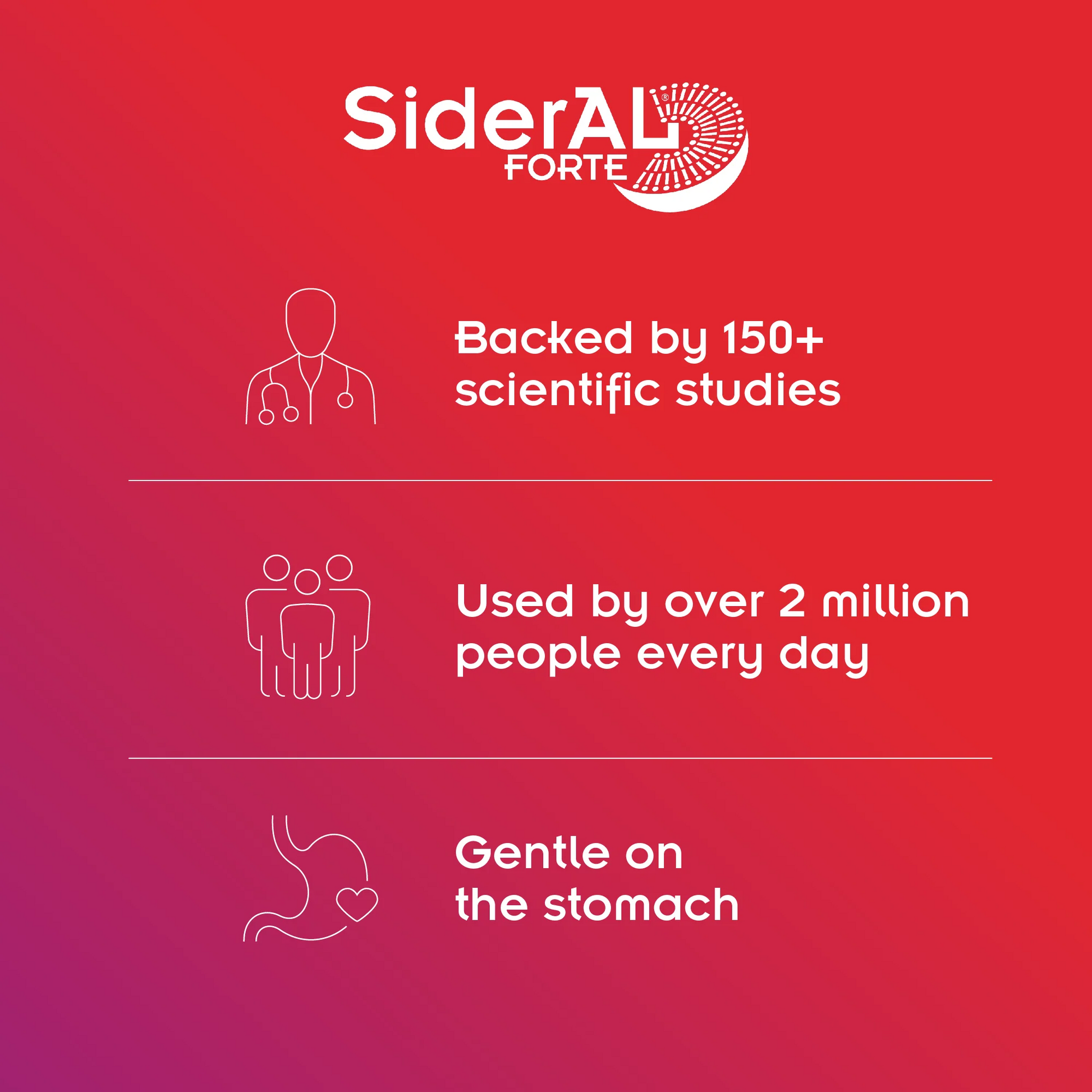 Low iron can affect energy and cognition – SiderAL® Forte helps you feel more alert, focused, and energized by increasing your iron levels.