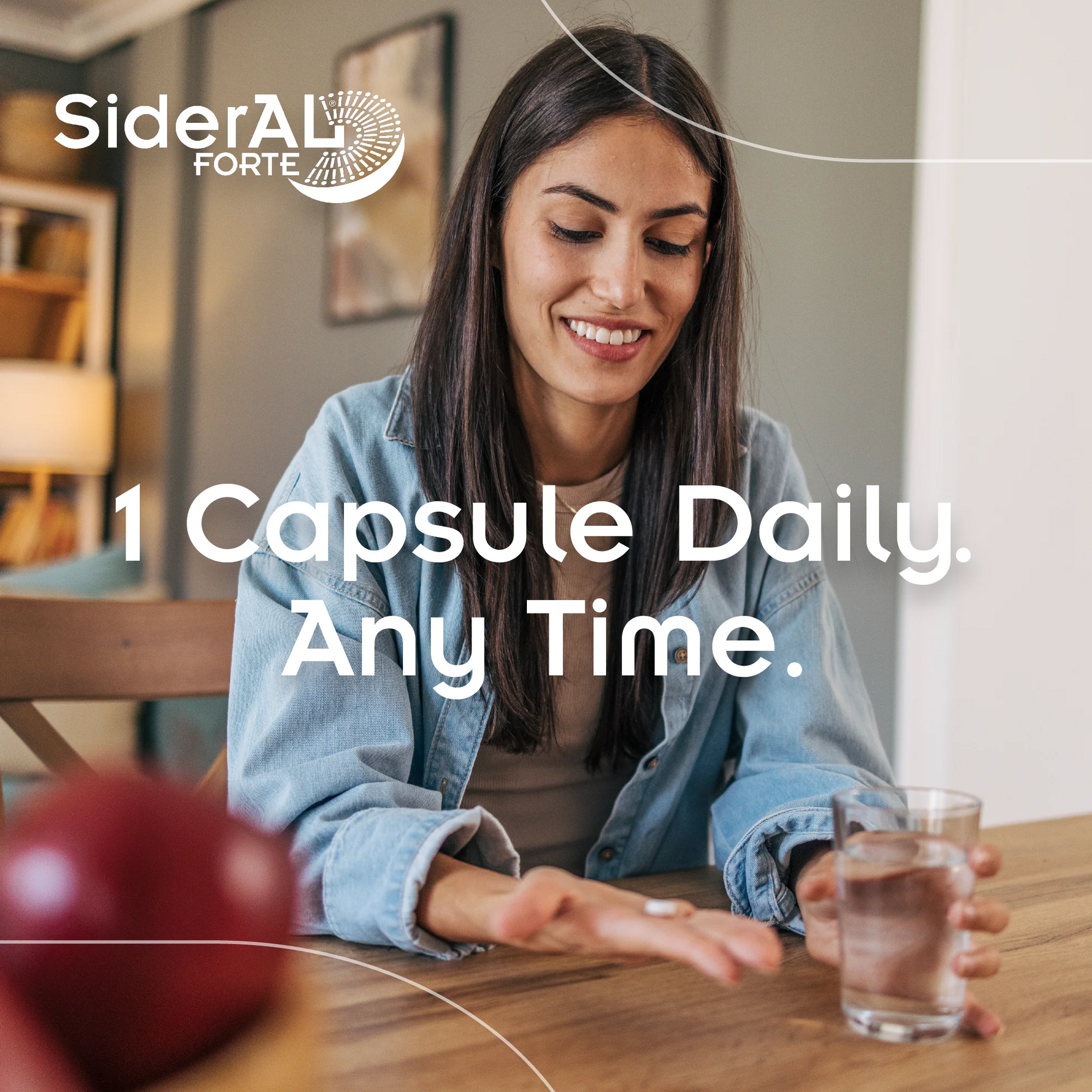 One capsule per day. Please refer to the packaging for full usage instructions and dosage details. You can take SiderAL® any time of day.